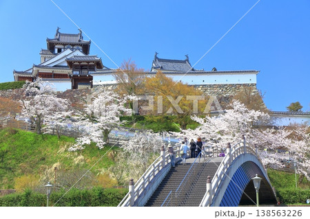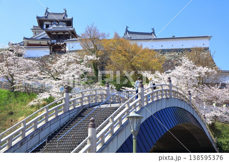 【京都府】福知山城から見た福知山市街地と満開の桜