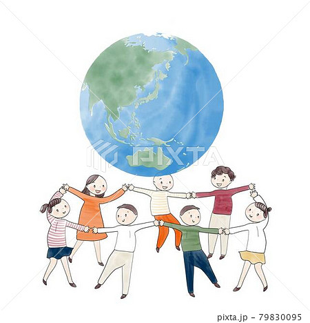 地球の周りで輪になっている子どもたち
