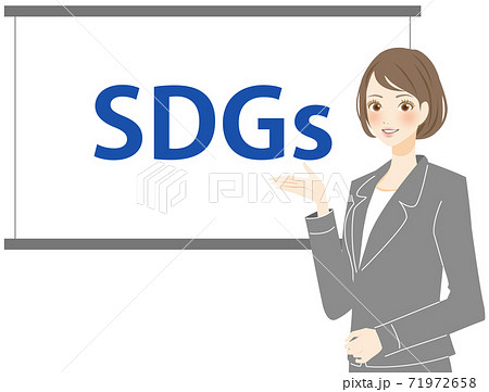 SDGsについて考える 解説するスーツ姿の女性