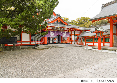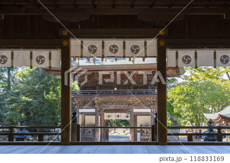 日牟禮八幡宮 舞殿から見える楼門(滋賀県近江八幡市)
