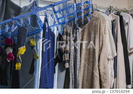 男性一人暮らし 室内干しの洗濯物 生活イメージ