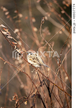 動物鳥写真 春を待つ北国のスズメ ふくら雀 早春の光の中で 野鳥のスズメ