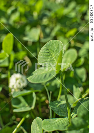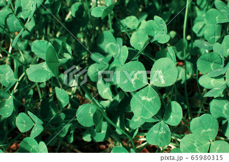 クローバーのアップ【緑背景】