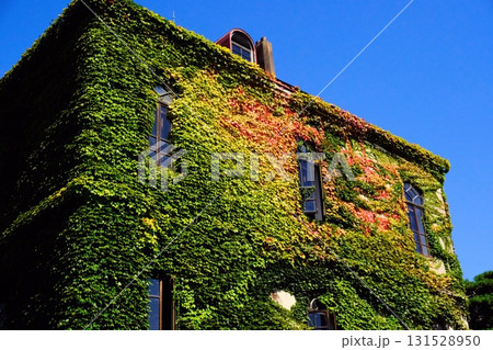 岩手県盛岡市の最古の洋館 景観重要建造物指定の明治の洋館 石井県令の私邸 ツタに覆われた洋館の窓辺