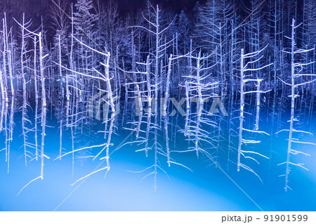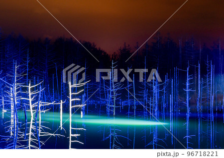 (北海道の風景) 美瑛町の青い池ライトアップ