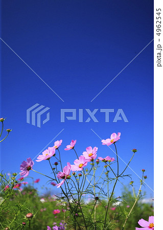 コスモスと快晴の青空