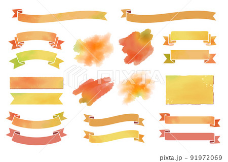 秋色のグラデーションの水彩リボン素材セット(文字無し)