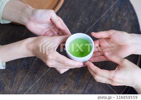 おもてなしのお茶を用意するミドル女性