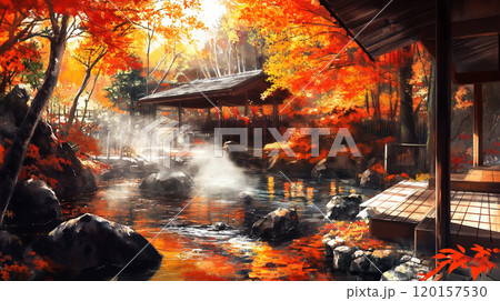 秋の紅葉に囲まれた露天風呂