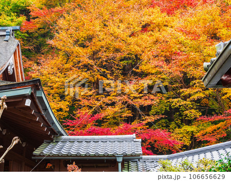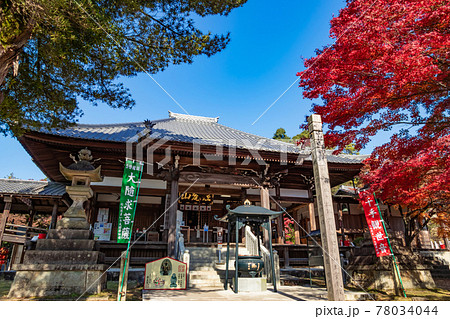 紅葉が美しい秋の継鹿尾観音寂光院 鐘楼堂