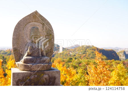 紅葉の中にある大日如来像 継鹿尾観音寂光院