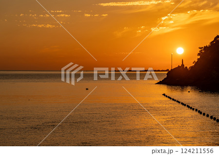 熊本県天草市 世界文化遺産に登録された天草の崎津集落にあるマリア像の夕陽展望デッキからの夕陽