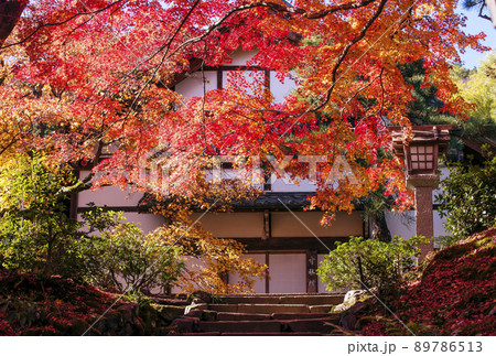 常寂光寺 秋のスケッチ 秋 紅葉 日本の家 民家 故郷 ふるさと レトロ 紅葉