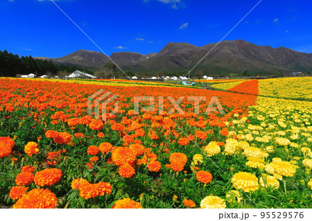 【大分県】晴天のくじゅう花公園(高原の彩りのマリーゴールド)