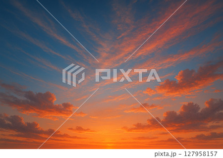 夏から秋へ移ろう茜色の空, やさしい夕焼け色に染まる空模様, グラデーションが美しい秋の夕空背景