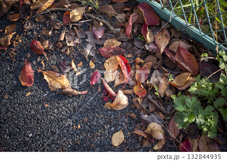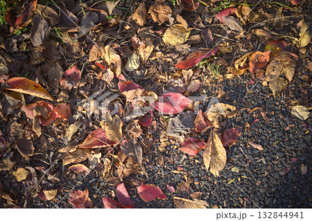 秋の落ち葉 散歩道 地面 一面 赤い イメージ