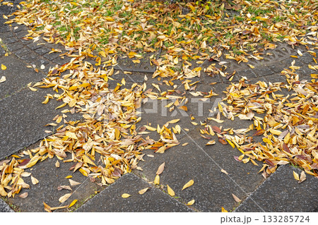 秋の落ち葉 散歩道 地面 一面 黄色い イメージ