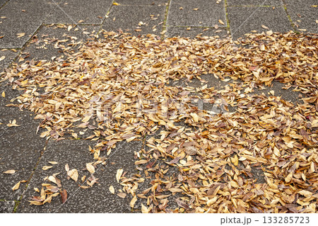 秋の落ち葉 散歩道 地面 一面 黄色い イメージ