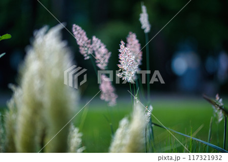 ミニパンパスグラス シロガネヨシの花穂の風景