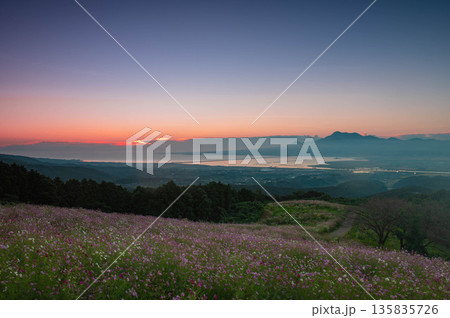 白木峰高原のコスモスと朝焼け