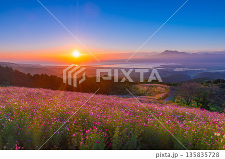 【長崎県】自然干陸地フラワーゾーンのコスモスと朝日