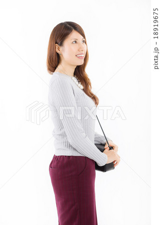 秋ものの落ち着いた雰囲気の衣装を着たミドルの女性