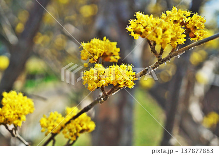 黄色いサンシュユの花(春、三月)