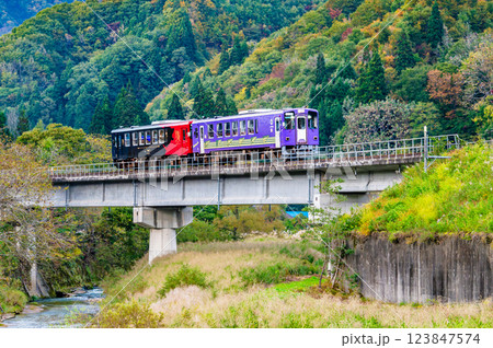小又川橋梁を渡る秋田内陸線新観光車両「秋田マタギ号」