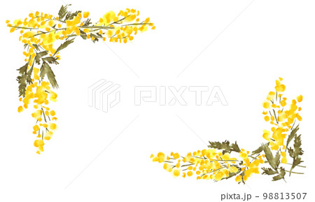 水彩画。水彩タッチのミモザベクターフレーム。水彩のミモザ装飾フレーム。