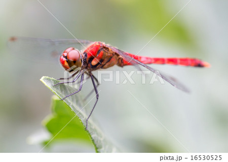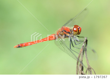 生き物 昆虫 トクサに止まるリスアカネのオス