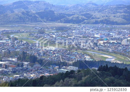 笠岡諸島最大の島・北木島 秋葉山の山上から見た初夏の大浦地区の風景1 岡山県笠岡市