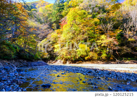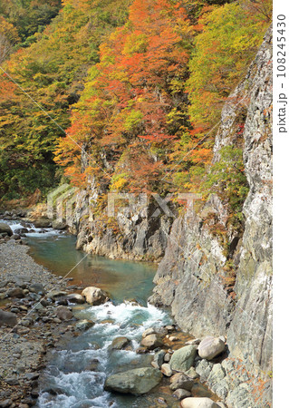 錦秋の秋山郷 前倉橋付近の中津川渓谷