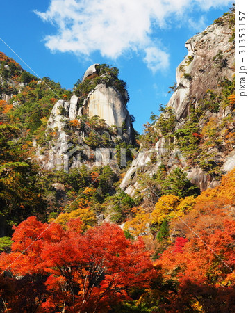 昇仙峡 御嶽昇仙峡 秋イメージ 紅葉 山岳 縦構図