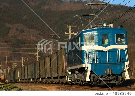 残照に輝く鉱石貨物列車 秩父鉄道デキ300形302号機牽引
