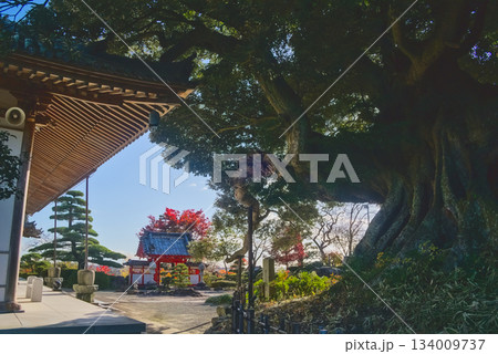 称名寺本堂と大シイノキが包む秋色の境内風景