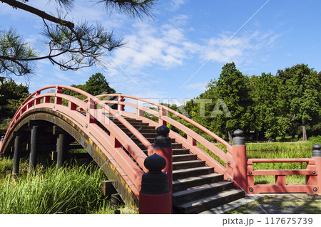 青空と赤い橋(神奈川県横浜市金沢区金沢文庫の称名寺の初夏)