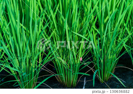 夜中のうちに稲に産卵されたジャンボタニシの卵