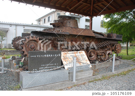 旧「陸軍少年戦車兵学校」に帰還した九七式中戦車(静岡県富士宮市)