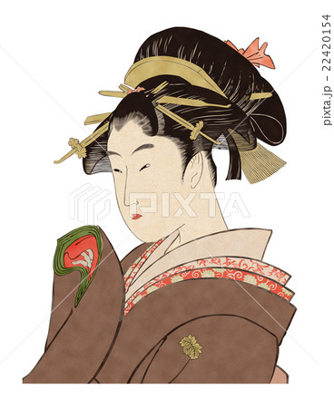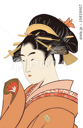 歌麿 美人画と広重 上野下寺つばきのイメージイラスト