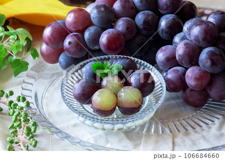 秋の味覚 窓辺のシャインマスカットとピオーネ