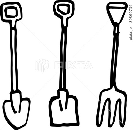 ガーデニングショベル・フォーク・の手書き線画イラストのベクター素材(背景透過)