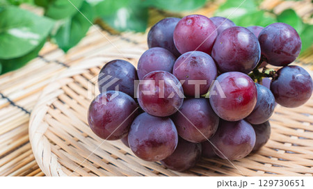 竹ざるに盛られたピオーネピオーネ, 葡萄, ぶどう, 国産ぶどう, 巨峰, 秋の果物, フルーツ,