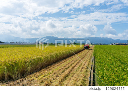 コンバインでの稲刈り風景