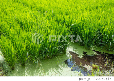 日本の田舎の稲田の風景