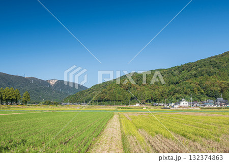収穫後ののどかな田園風景 滋賀県高島市マキノ町