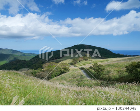 秋晴れの稲取細野高原のススキ 静岡県賀茂郡東伊豆町