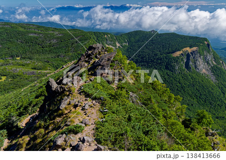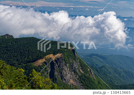 八ヶ岳連峰・天狗岳から見る稲子岳の岩壁と雲湧く山並み