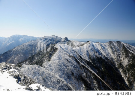 冬の大峯山 大普賢岳からの山上ヶ岳と稲村ヶ岳