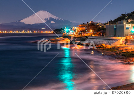 《神奈川県》夜の湘南海岸・富士山をのぞむ