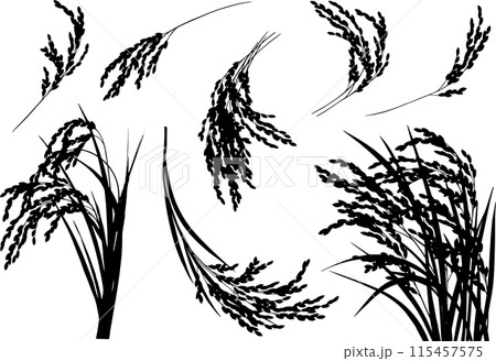 リアルな稲のシルエット モノクロ バラエティ
